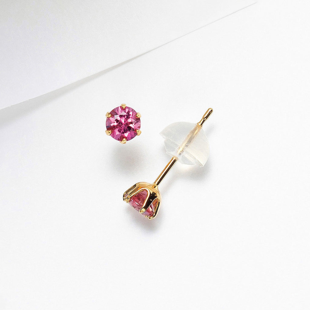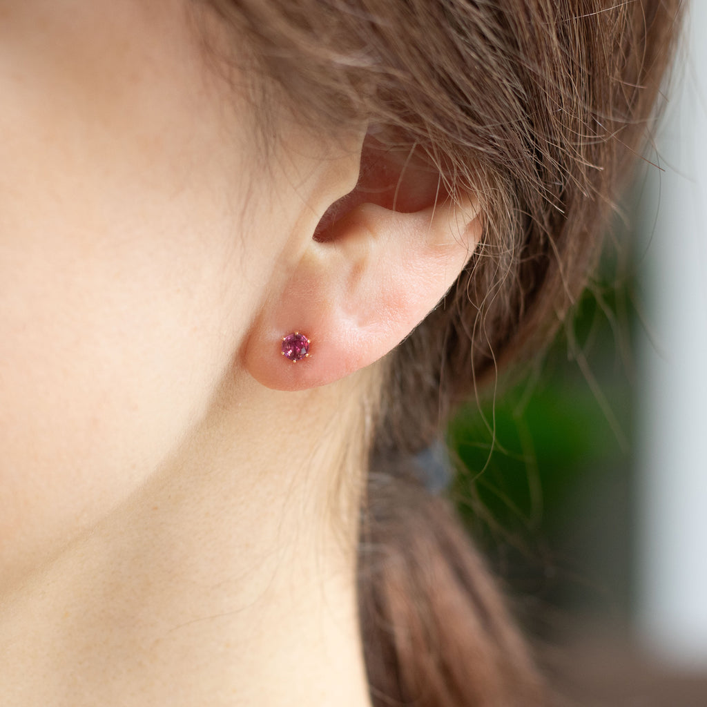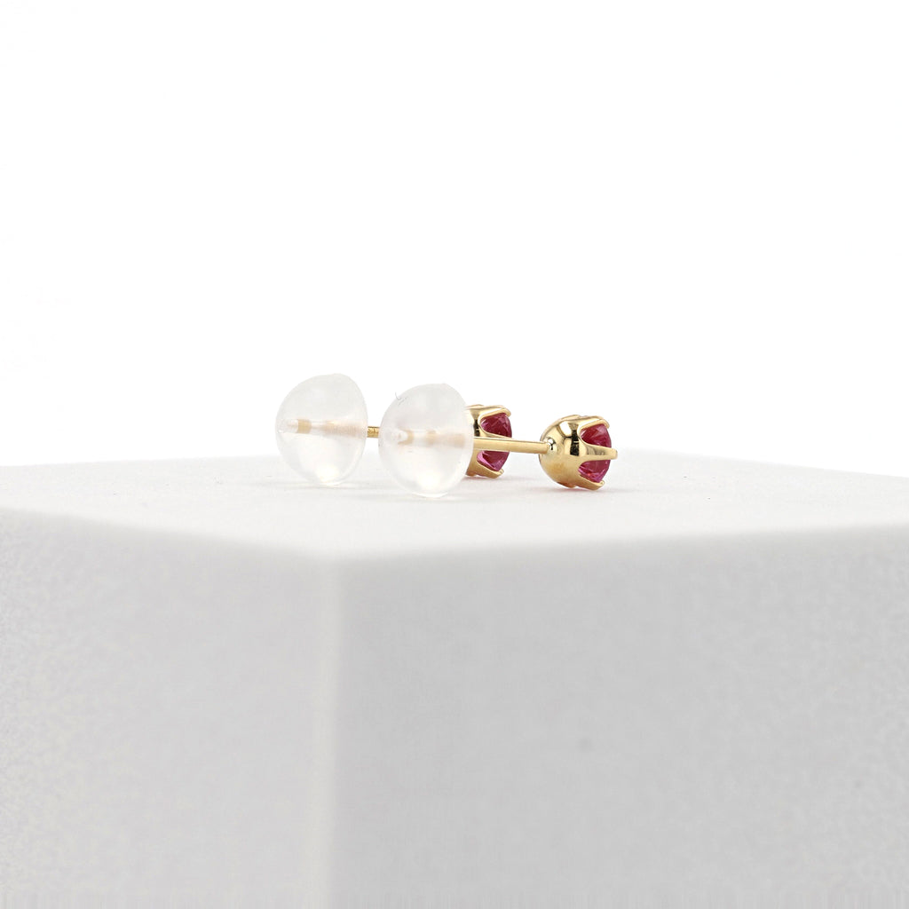 キラキラと輝くラウンドカットのルビーをベーシックなスタッドタイプのピアスに仕立てました。