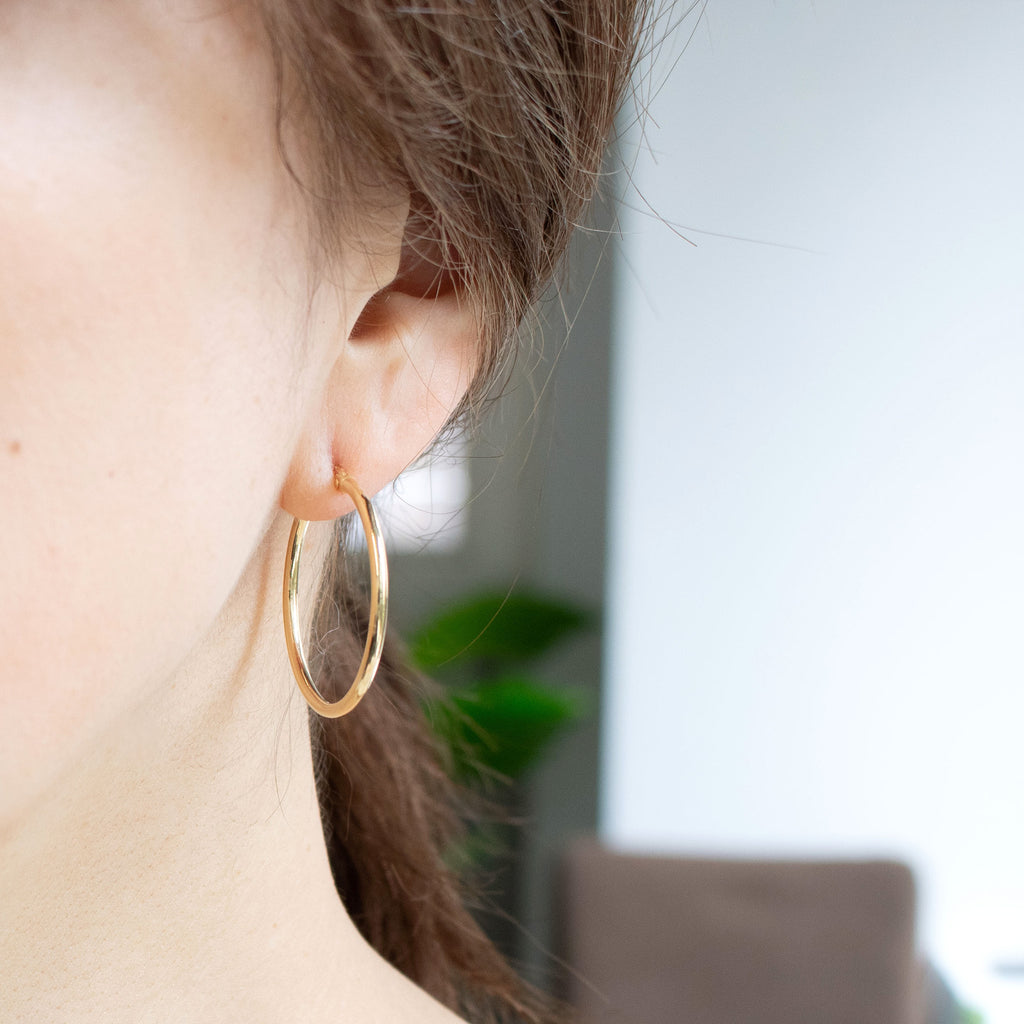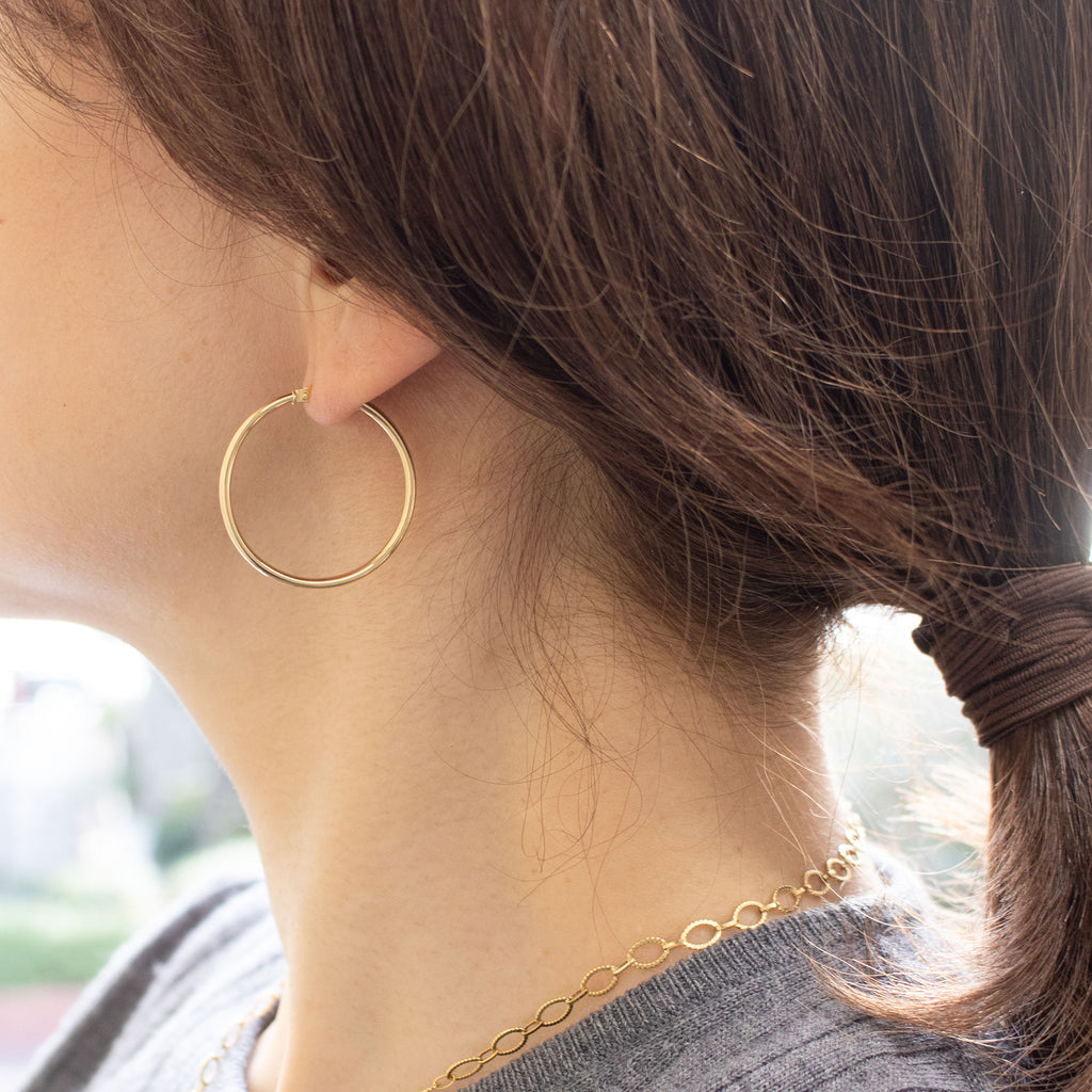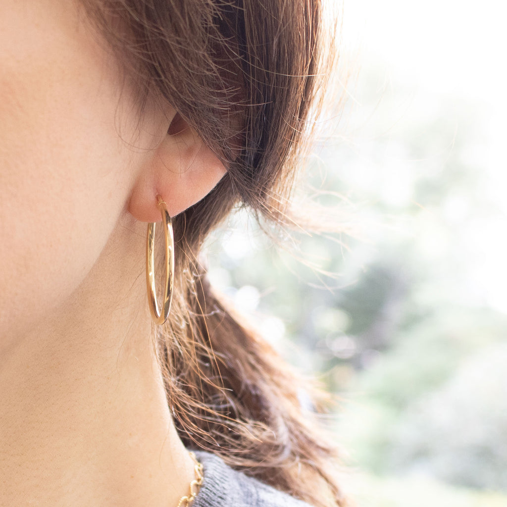 18金イエローゴールド製のフープタイプピアス。奇をてらわないベーシックなデザインです。