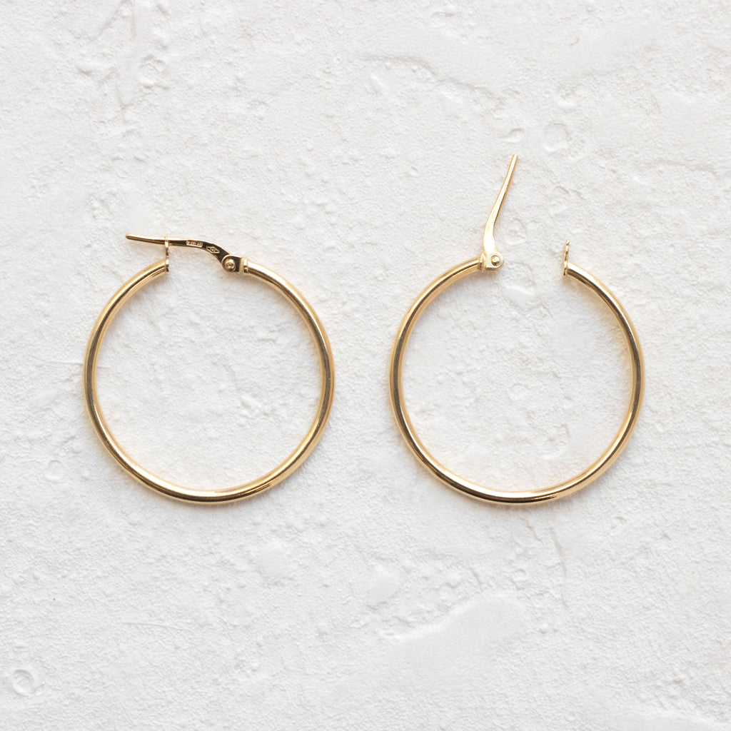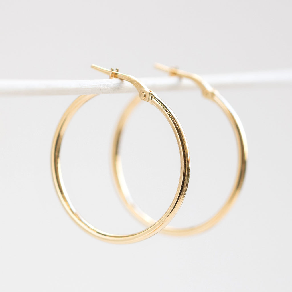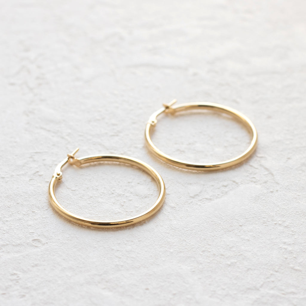 18金イエローゴールド製のフープタイプピアス。奇をてらわないベーシックなデザインです。