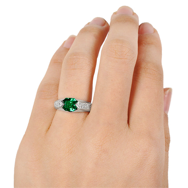 よりエメラルドを際立たせるようにダイヤモンドをセッティングし、 更にサイドからもご覧頂ける輝きを存分にお楽しみいただける当商品を 是非、ご堪能くださいませ。