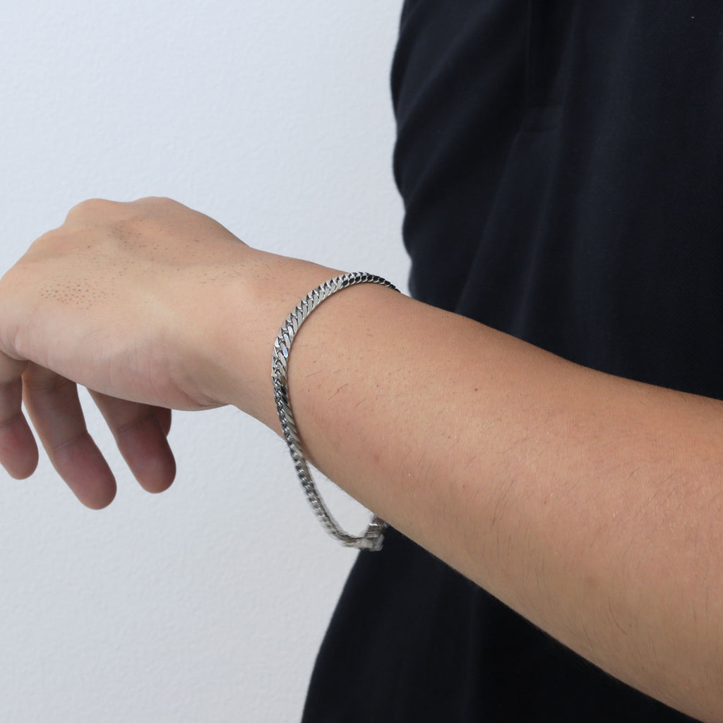 適度な重みと高級感があり、身につけるたびに満足感を得られるブレスレットです。