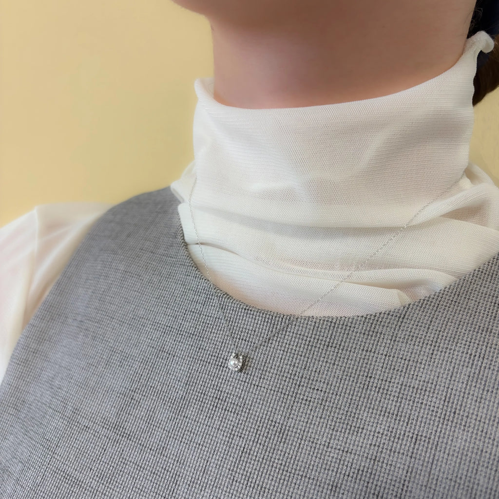 ダイヤモンドで象られた馬蹄モチーフの中央に、3mmのアコヤベビーパールを添えた上品なネックレス。