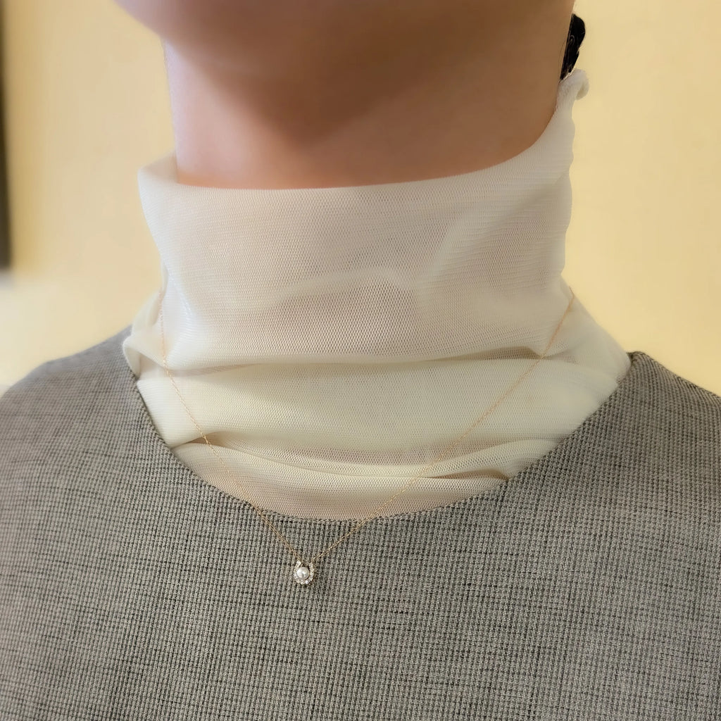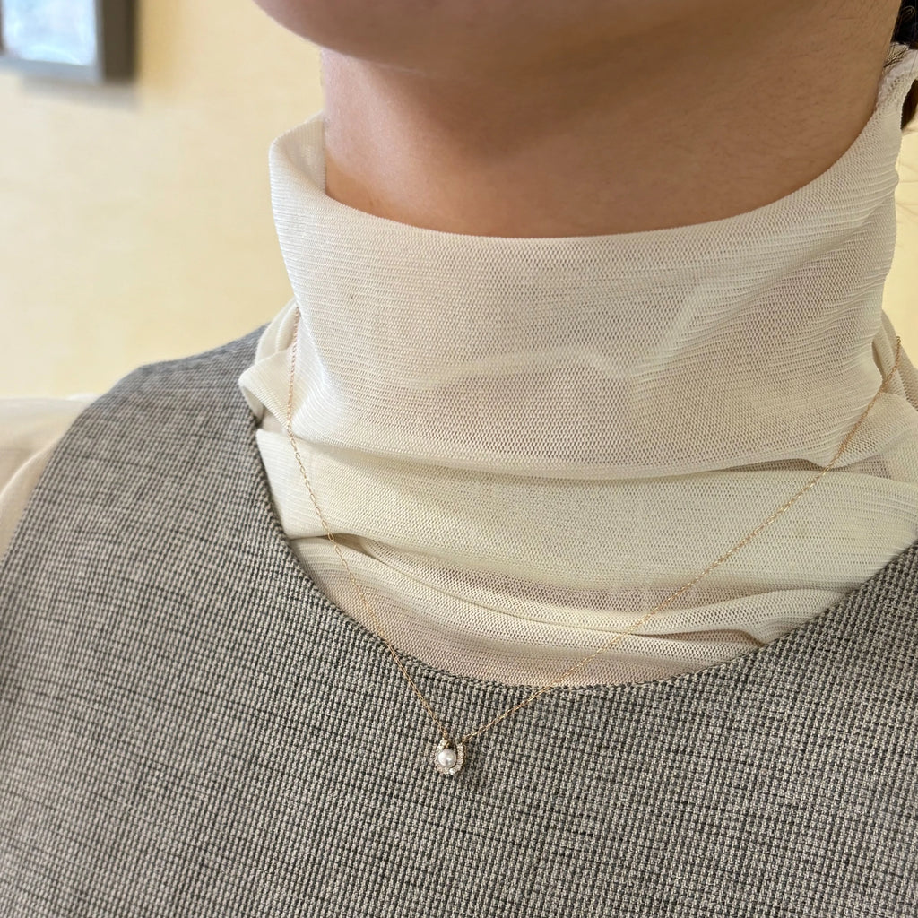ダイヤモンドで描かれた馬蹄の中心に、3mmアコヤベビーパールをあしらった愛らしいネックレス。