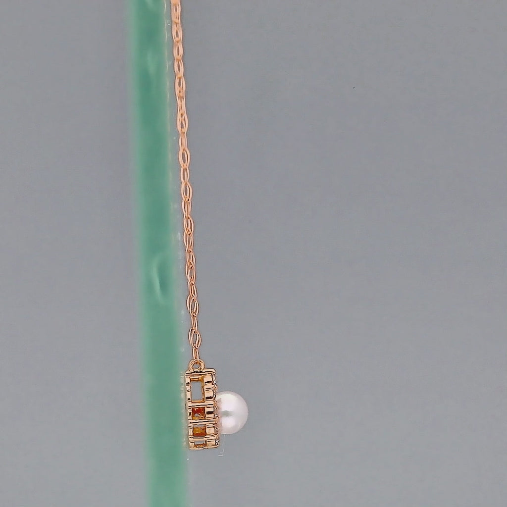 ピンクゴールドの温もりある光が、パールの清楚な艶を優しく包み込む、女性らしい魅力の漂う一品です。