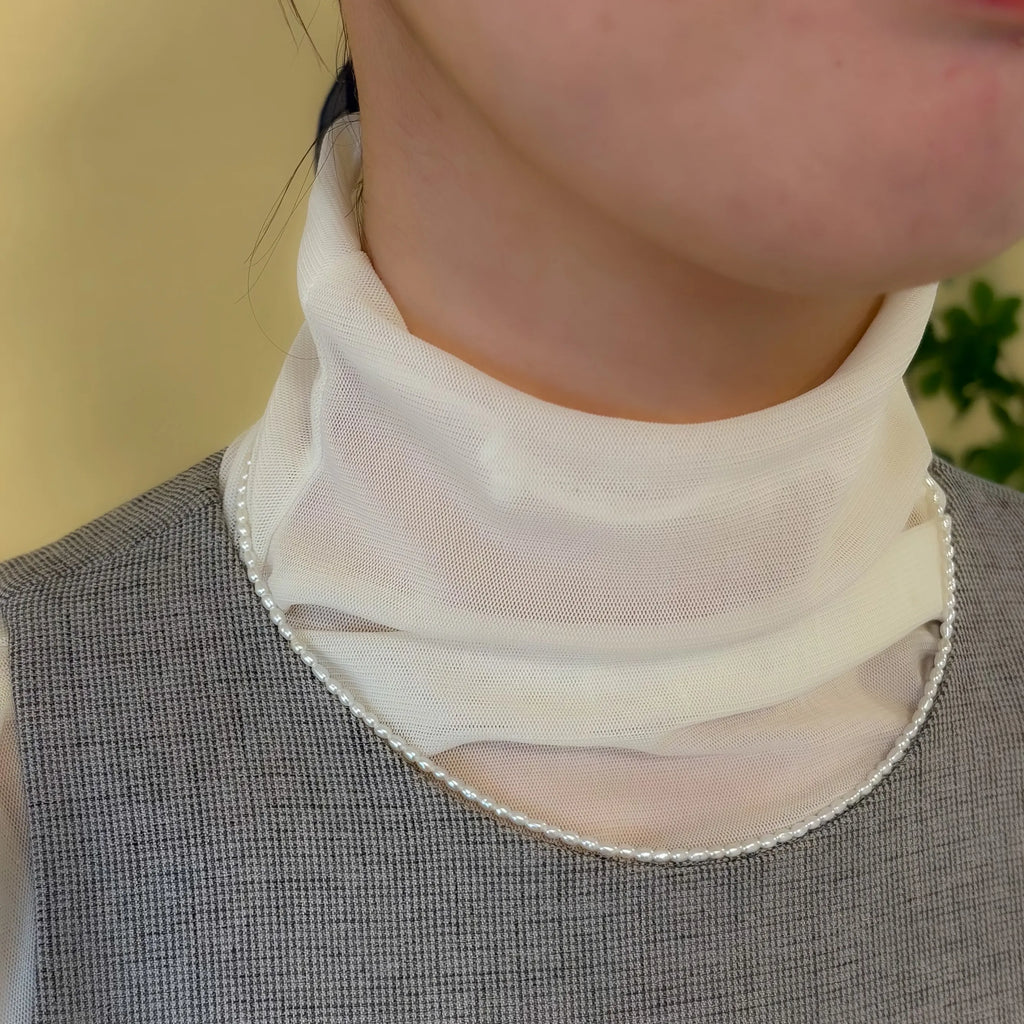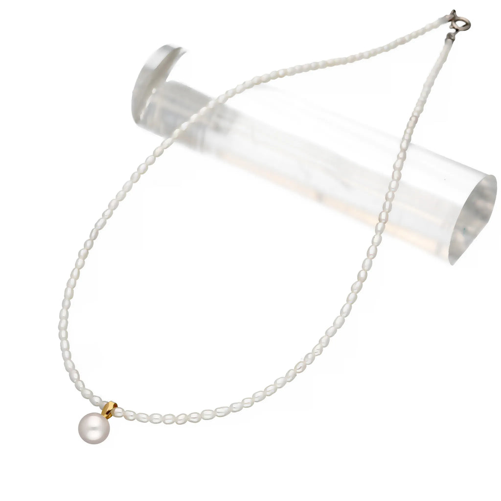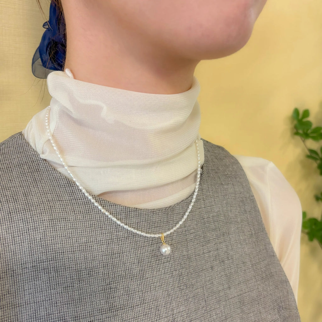 小粒ながらも美しいテリを持つ、2〜2.5mmの淡水パールを連ねたネックレスに、