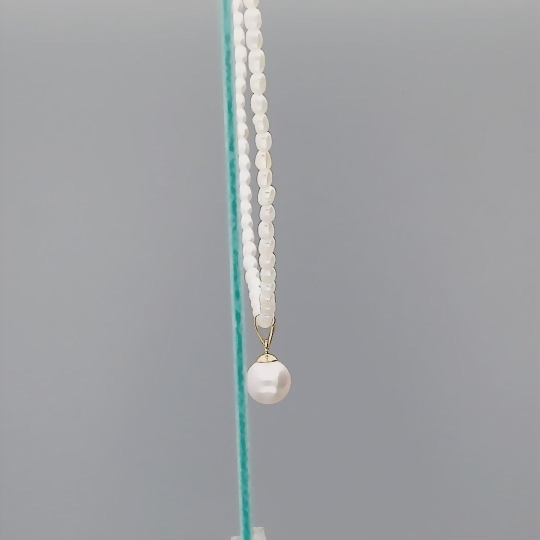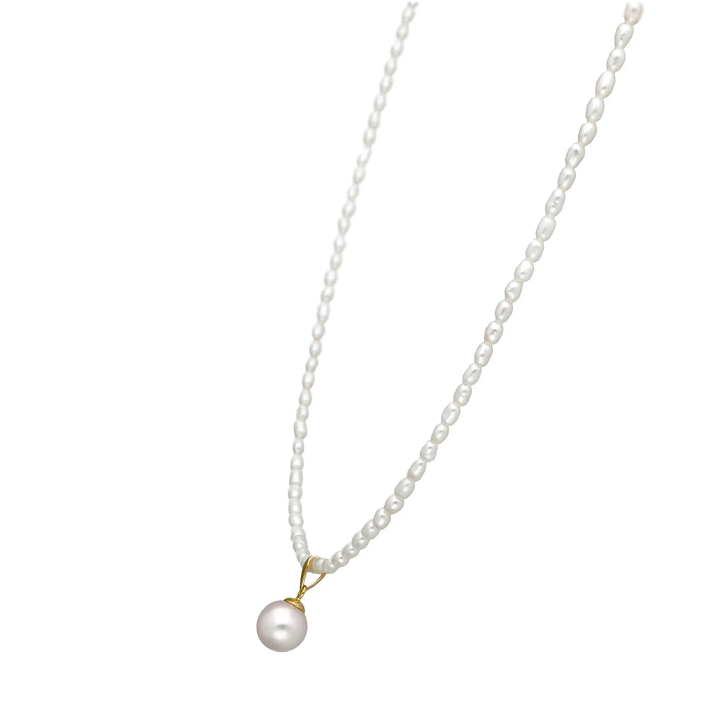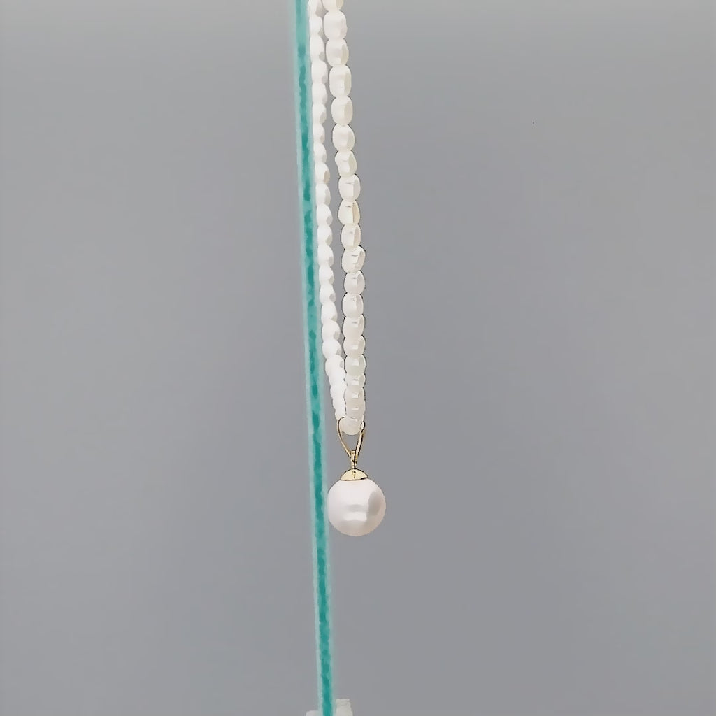 小粒ながらも美しいテリを持つ、2〜2.5mmの淡水パールを連ねたネックレスに、