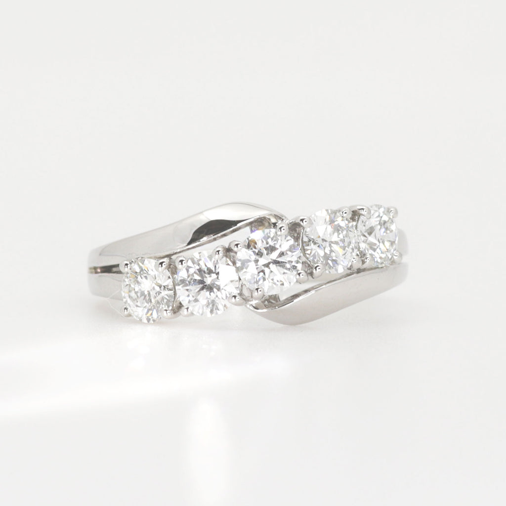 そのすべての項目で高品質という結果を得たダイヤモンドのみを、贅沢にも「5石」も使用したリングです。