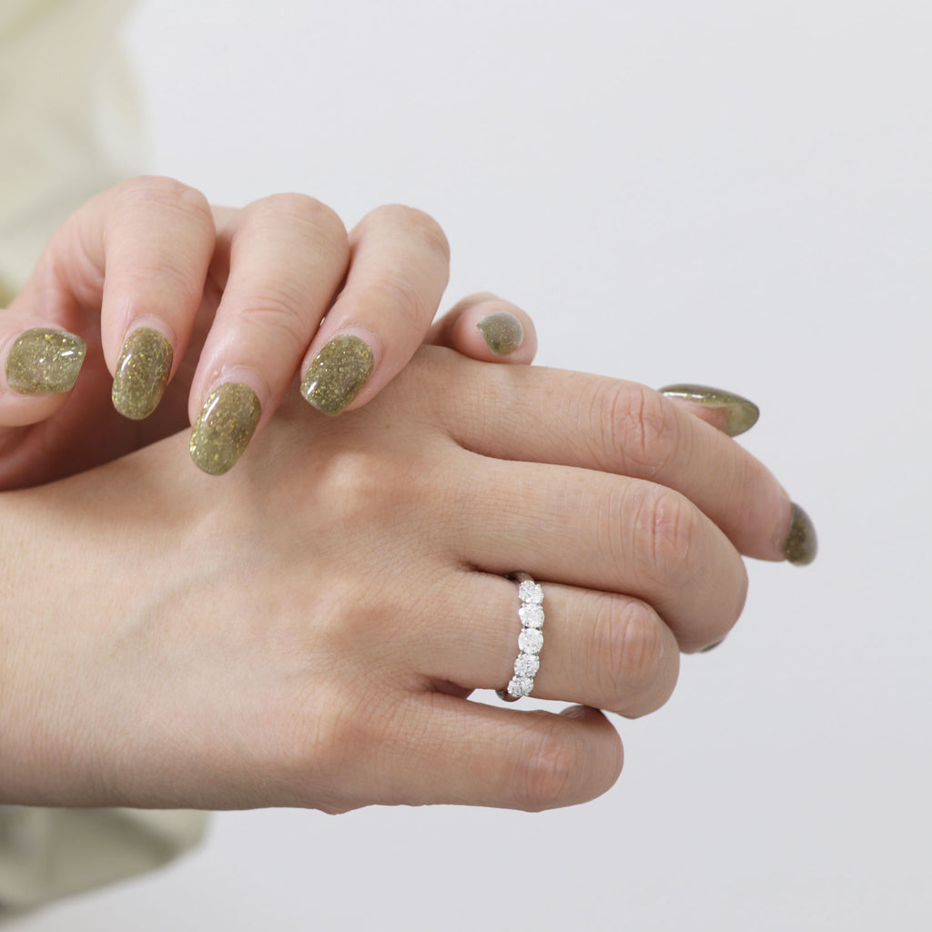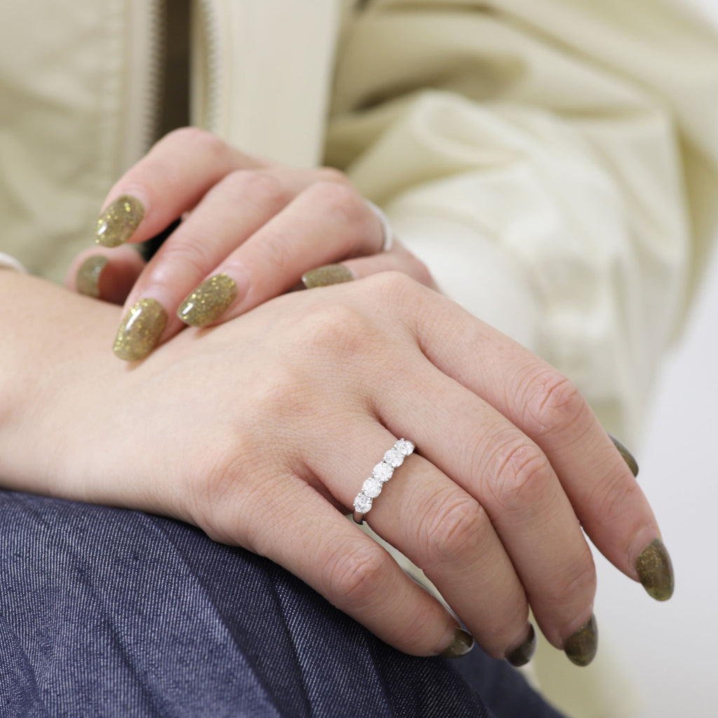 ダイヤモンドを横に真っ直ぐ5石並べる事により、サイドからの光も取り込み最大限にダイヤモンドの煌きを引き出します。