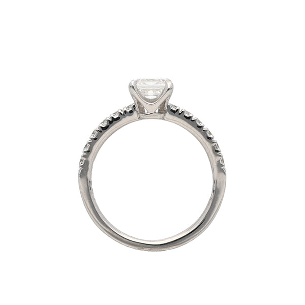 圧倒的な美しさ、Dカラー、VVS1のスクエアエメラルドカットダイヤモンドリング。 ダイヤモンドといえばラウンドカットが主流ですが、スクエアエメラルドカットはダイヤ本来が持つ輝きを放つという特徴がございます。 その輝きは高貴な光と考えられ、貴族の間では王妃に贈られるダイヤモンドリングのカットがエメラルドカットでした。 そんなスクエアエメラルドカットの1.0ctダイヤモンドを 存在感が際立つようハーフエタニティ風のリング枠にセッティング。 メインの石の存在感を楽しんでもらえるようシンプルな一粒ダイヤリングに仕立てました。 腕にはメレダイヤをあしらいハーフエタニティ風になっていますが そのメレダイヤモンドがスクエアエメラルドカットダイヤモンドをより一層ゴージャスに見せてくれます。 なんといってもダイヤモンドの品質は 【 1.01ct Dカラー VVS1 】 GIA(鑑定書付き) とカラーグレードの最高品質である無色透明なDカラー。 更にクラリティーはVVS1を厳選いたしました。 GIA鑑定でDカラー,VVS1という点、特に自信を持っておすすめさせていただきます。 ダイヤモンドの品質、そしてデザインにもこだわり抜いたプラチナダイヤモンドリングをどうぞご堪能くださいませ。