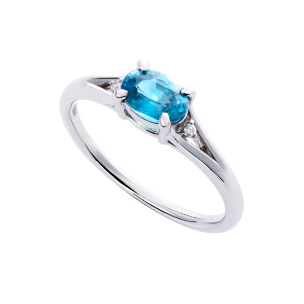 ブルージルコン(天然石) オーバルカット 約5.5mm×3.5mm 1石 0.5ctUPダイヤモンド 2石 合計0.01ct