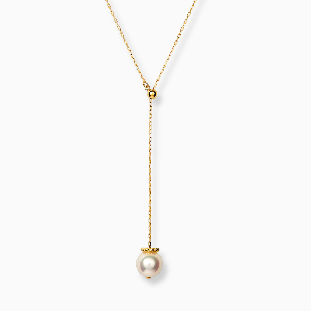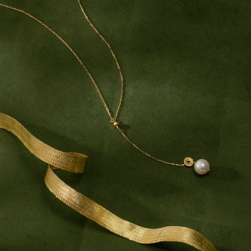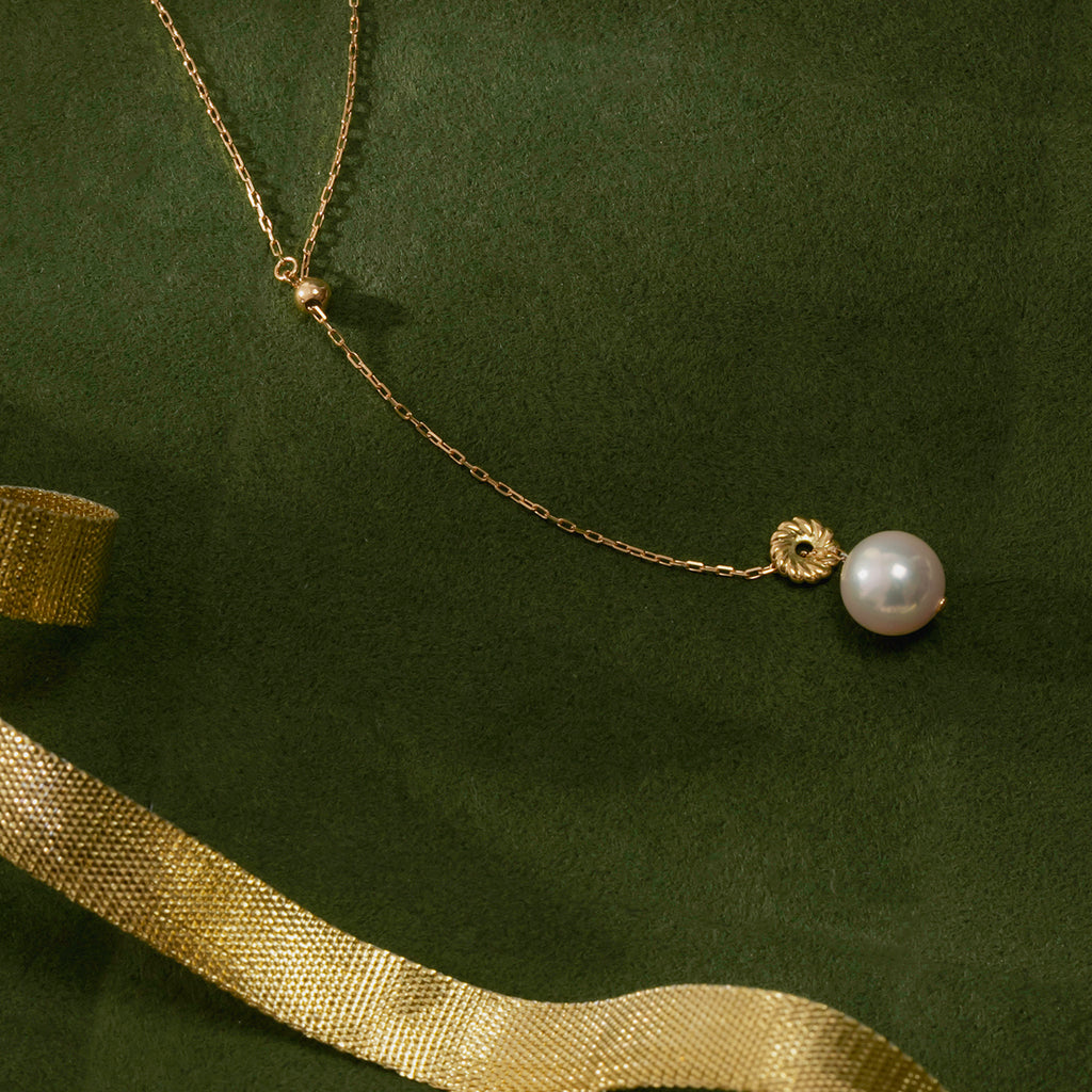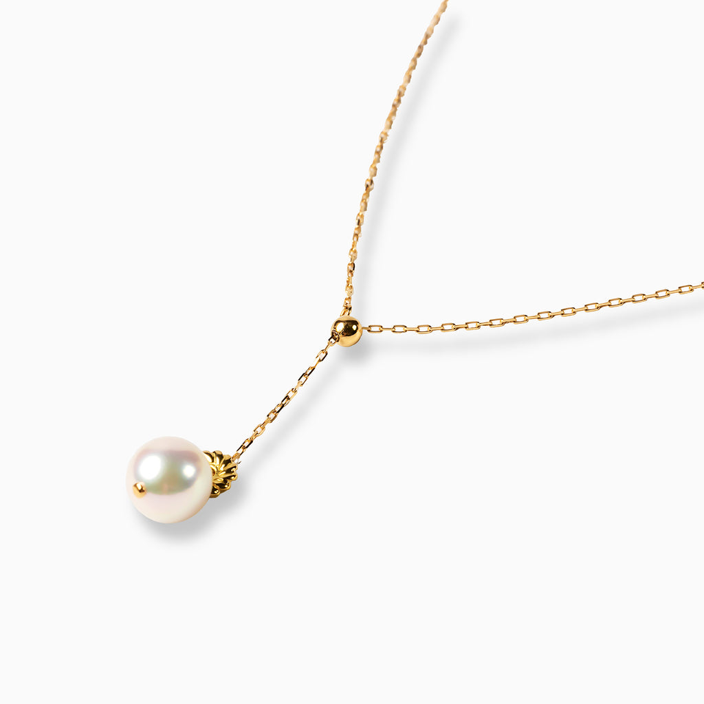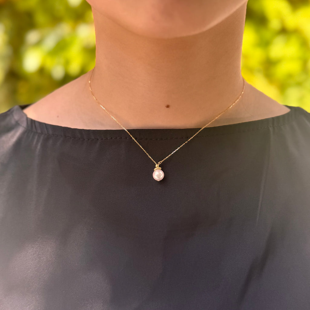 チェーンの先で、ひと粒のアコヤ真珠が軽やかに揺れます。