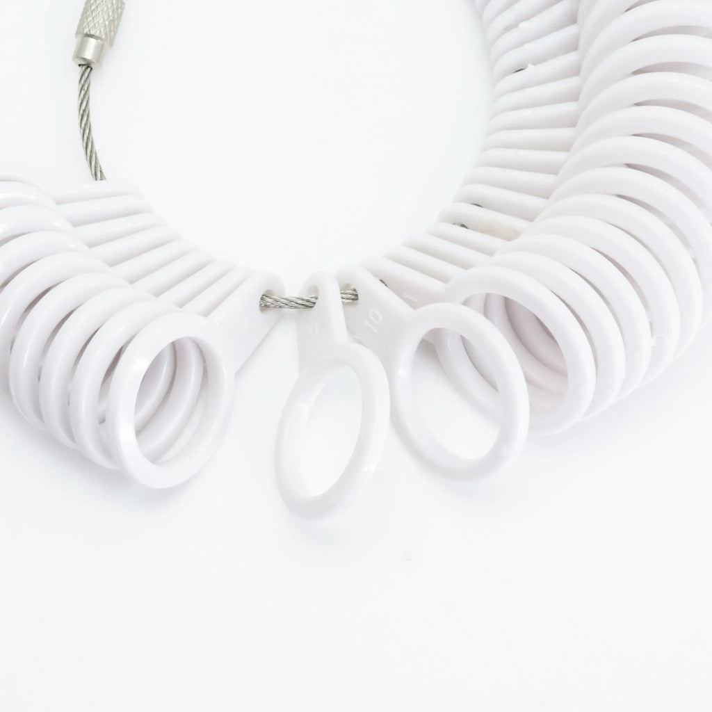 リングゲージをワイヤーから取り外し、測りたい指につけてください。