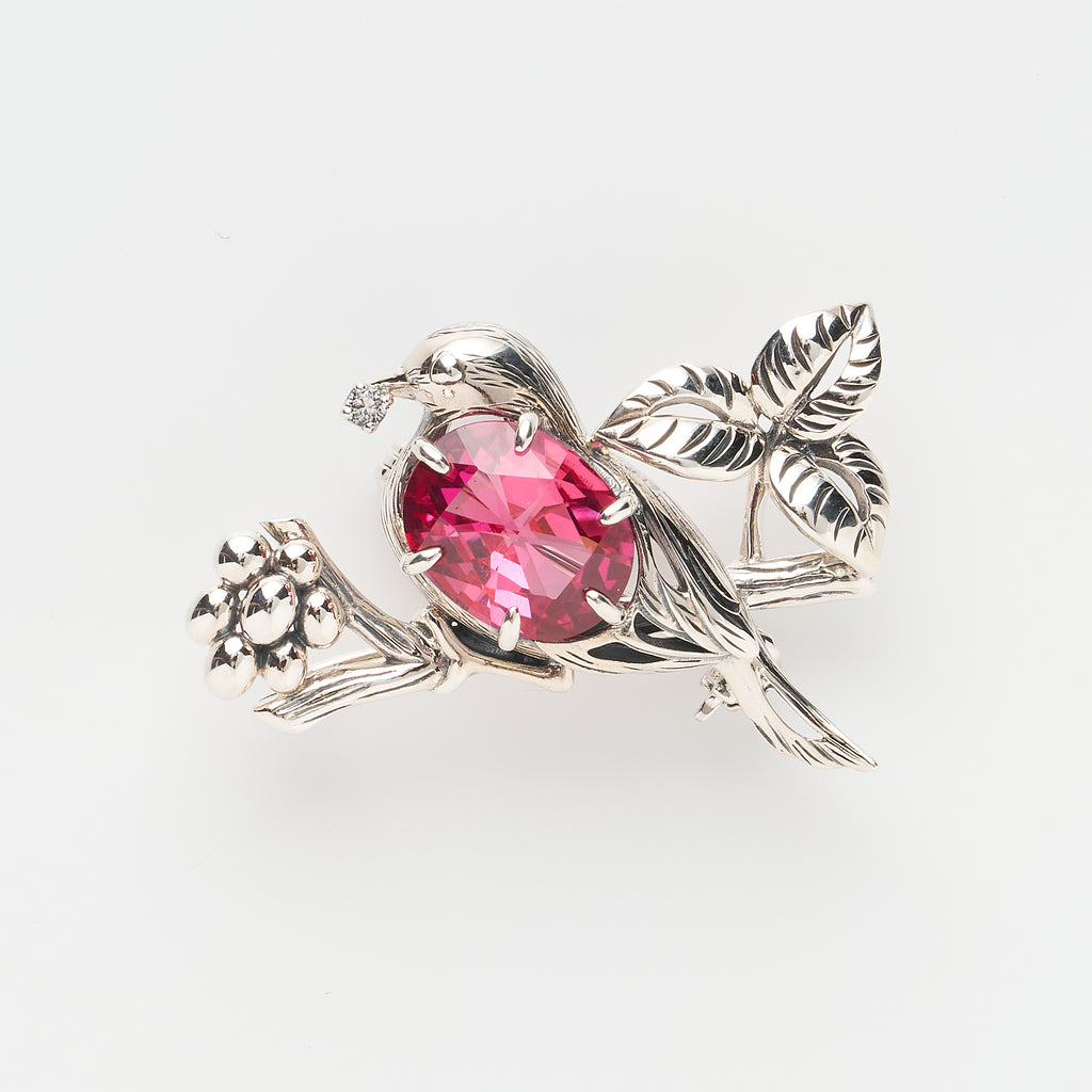 サファイアとホワイトトパーズで庭の小さな来訪者たちをモチーフに仕立てました。