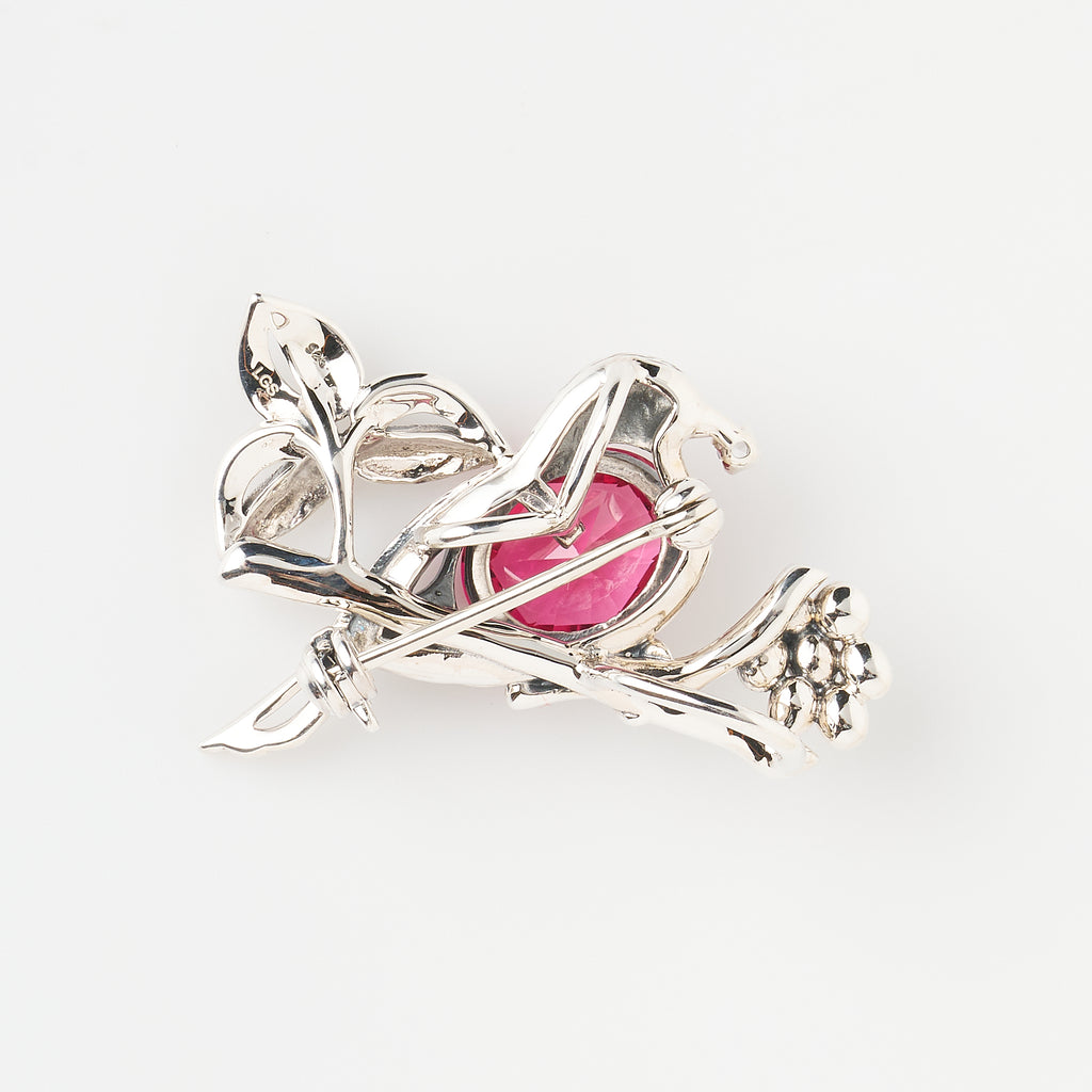 【 《English Garden/庭の小さな来訪者たち》シルバー製 ラボグロウンサファイア ホワイトトパーズブローチ兼ペンダントトップ 】