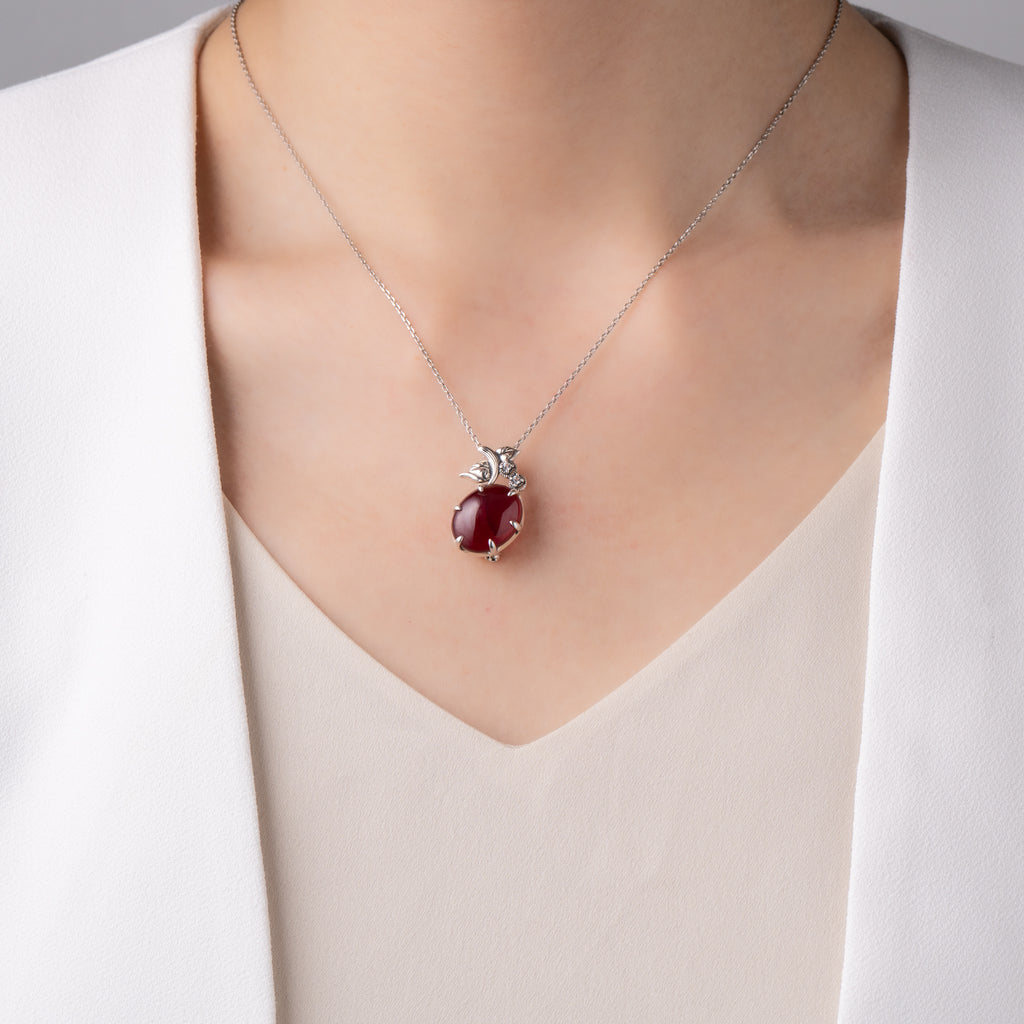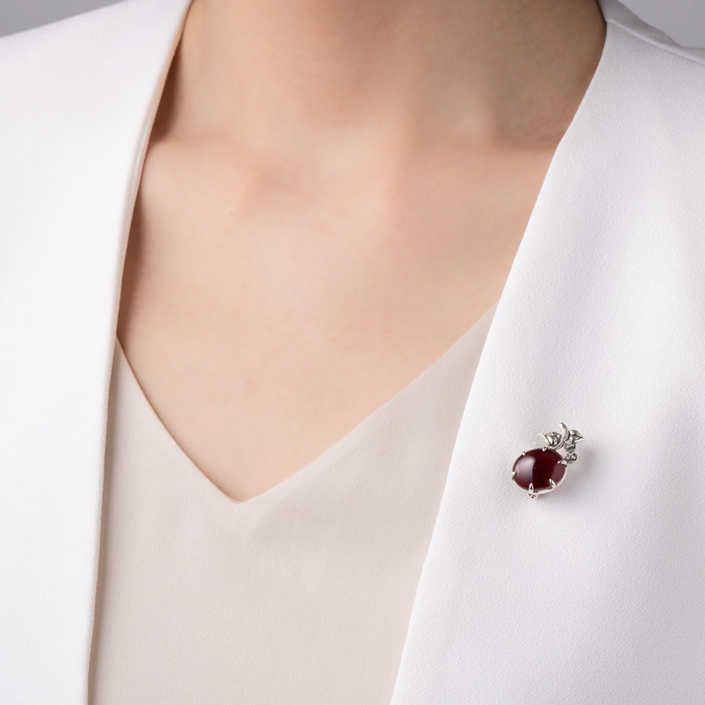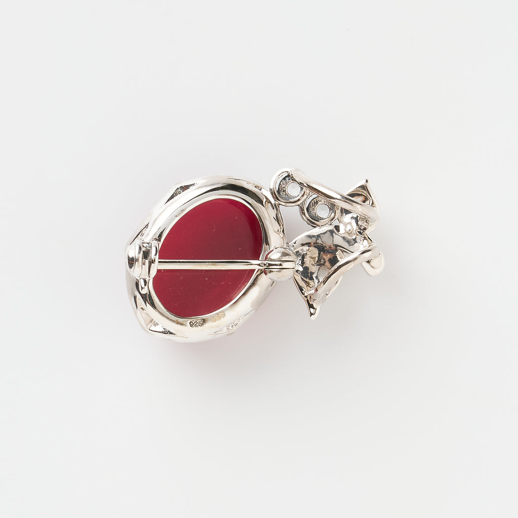 【 《English Garden/リンゴ》シルバー製 ラボグロウンルビー ホワイトトパーズブローチ兼ペンダントトップ 】