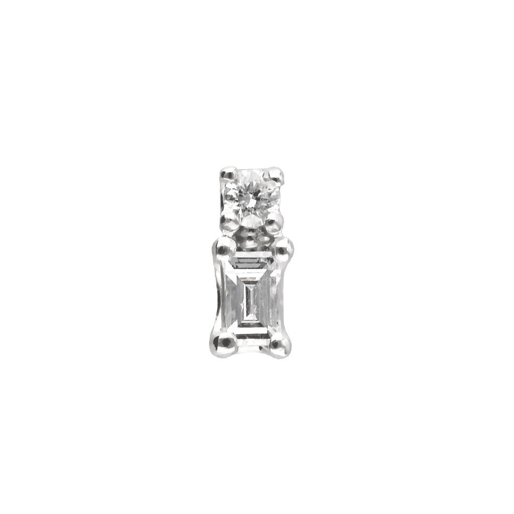 ピアスデザインの部分にはバケットカット1石、ラウンドカット1石のダイヤモンドをあしらい