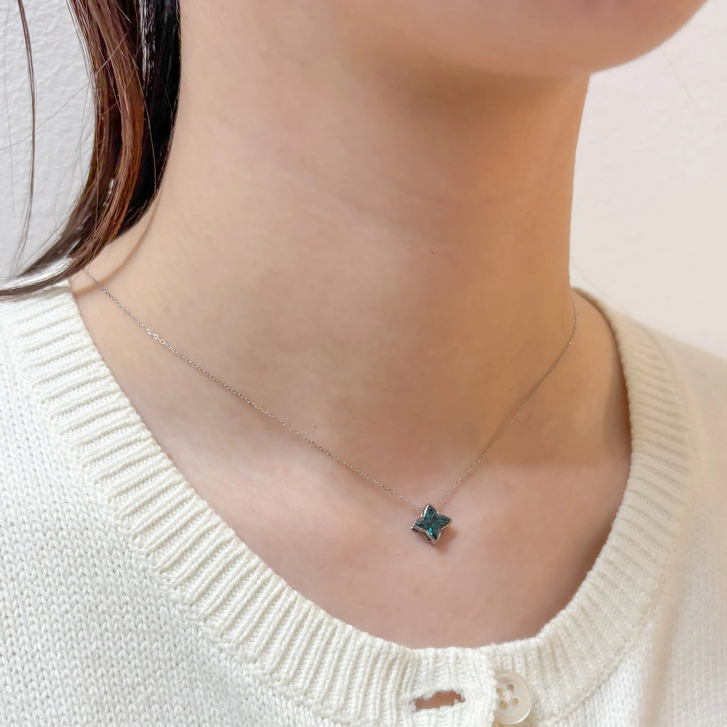 少しポップな雰囲気のフラワーカットが首元に華やかさをプラスしてくれます。