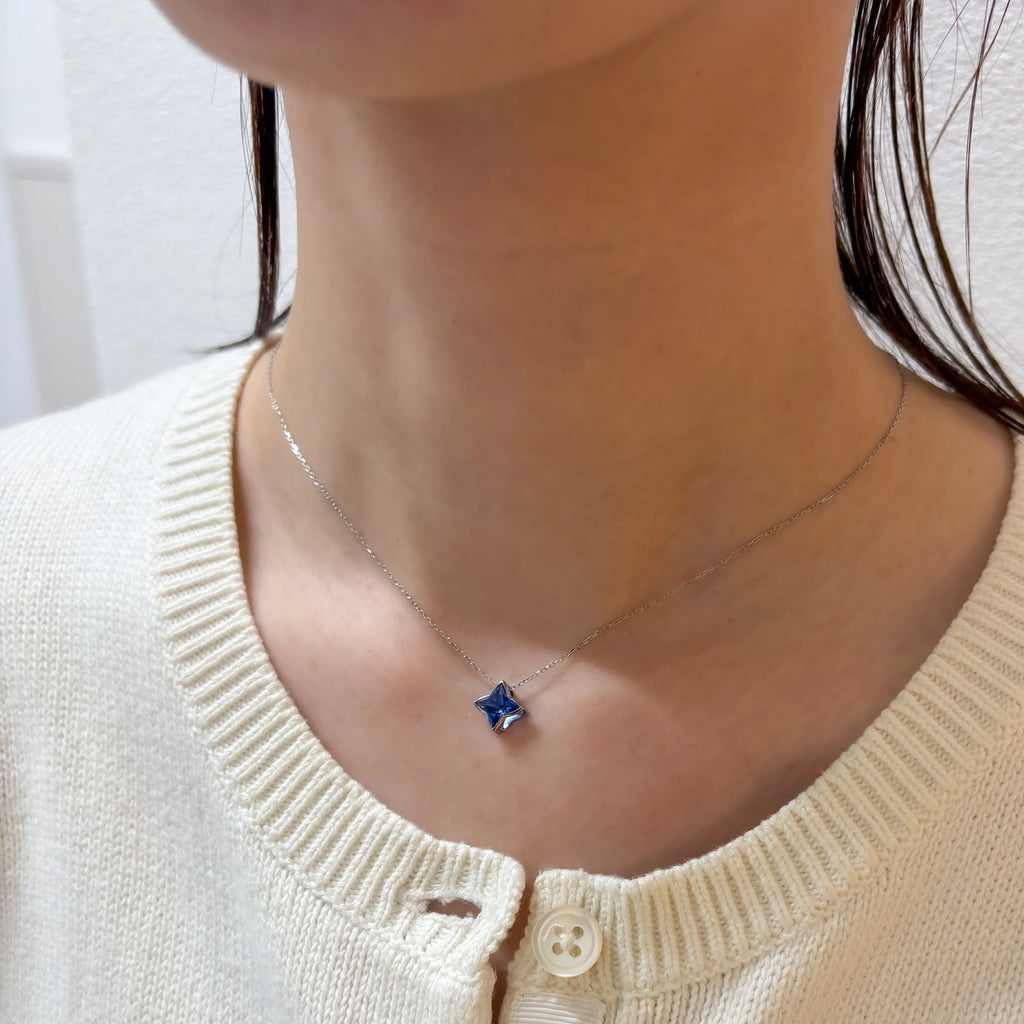 大粒のブルーサファイアをフラワーの形にカットしたブルーサファイアペンダントです
