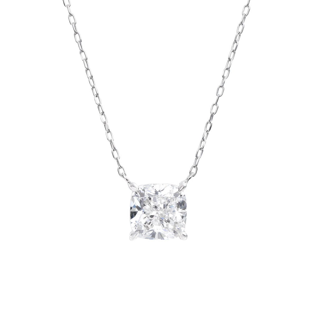 3.05ctのカラーレスダイヤモンドを、柔らかな輝きが魅力のクッションカットで仕上げたネックレス。