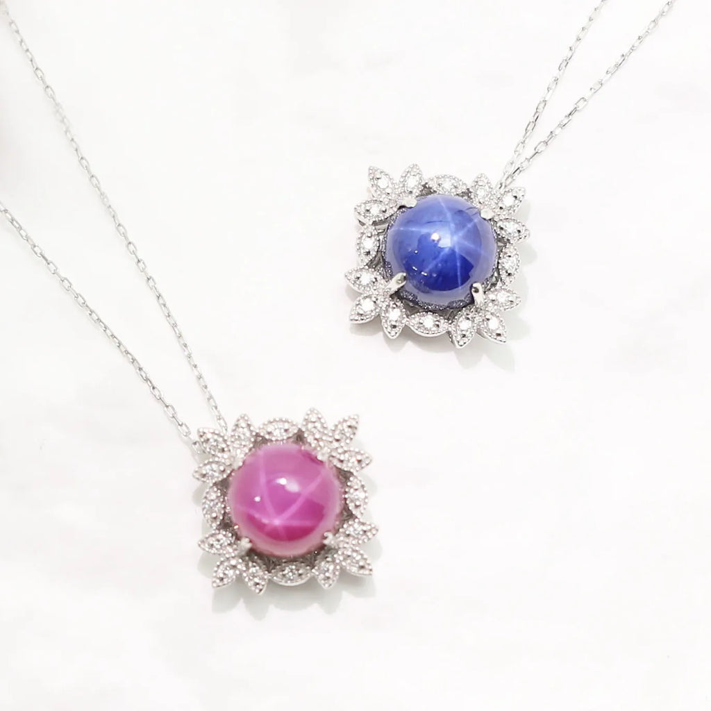 美しい星型の光を浮かび上がらせるスタールビーペンダント。