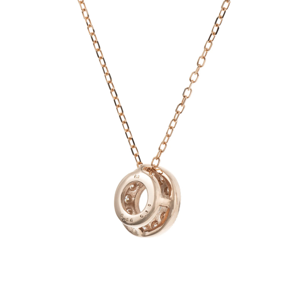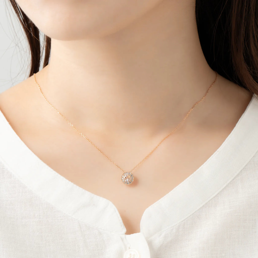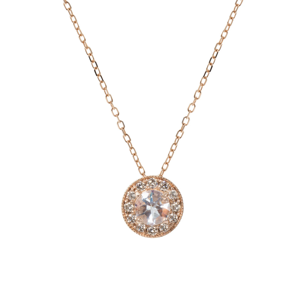 コインのようなフォルムが印象的な、アンデシンラブラドライトのK18ピンクゴールドネックレスです。