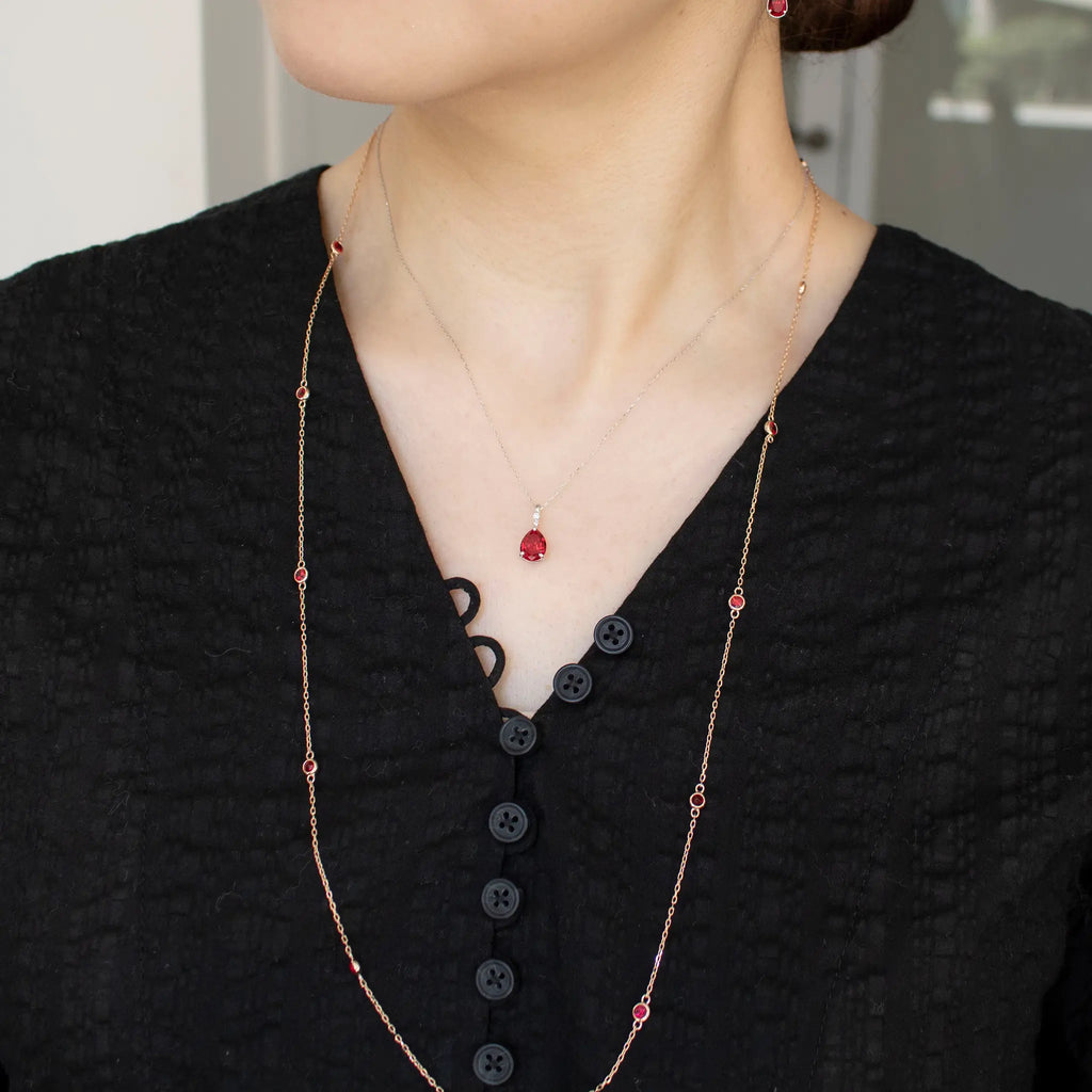高い透明度とはっきりとした色彩が特徴のクレサンベールルビーをペアシェイプにカットし、シンプルなデザインのペンダントに仕上げました。