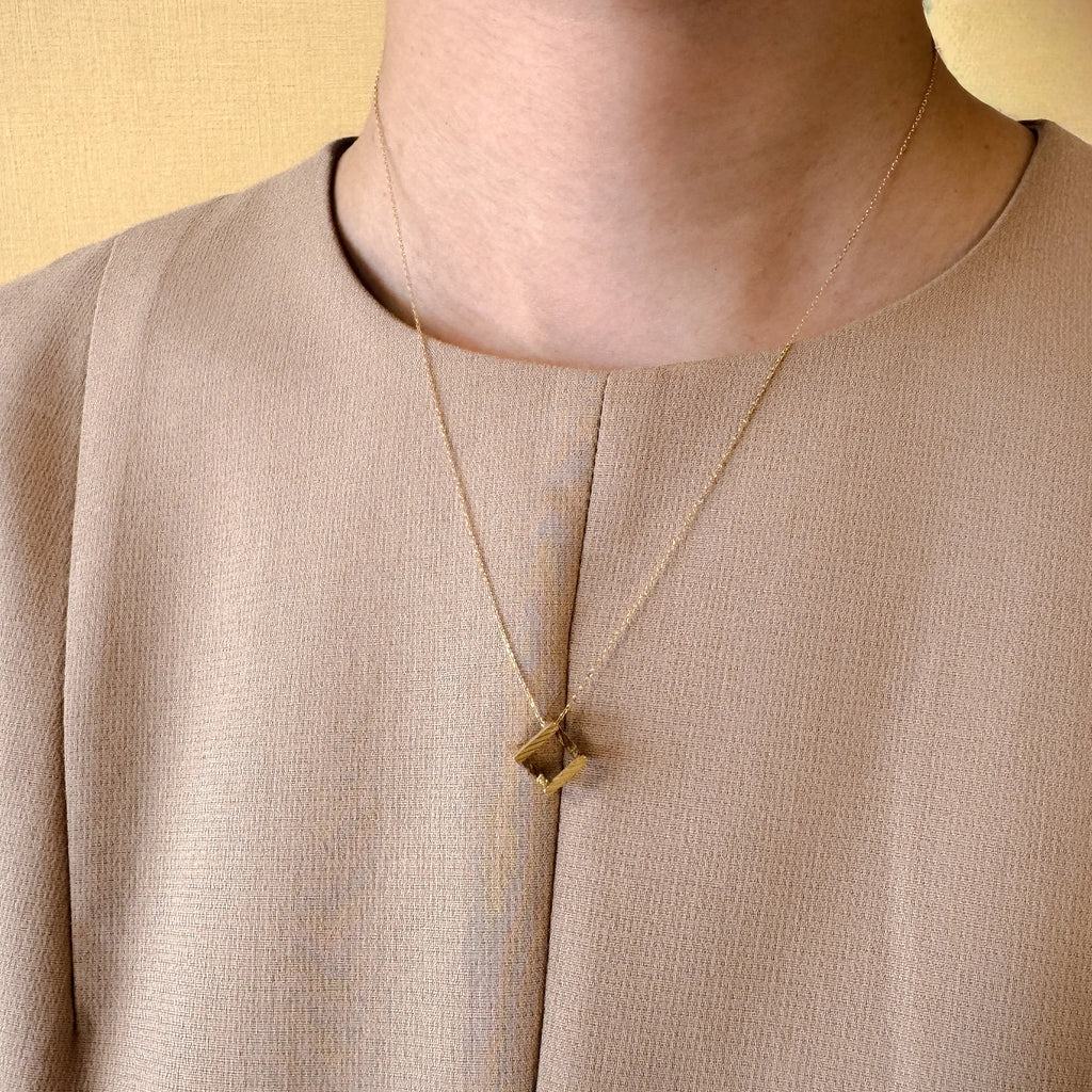 K18イエローゴールドの輝きを存分に活かした、立方体モチーフネックレス。