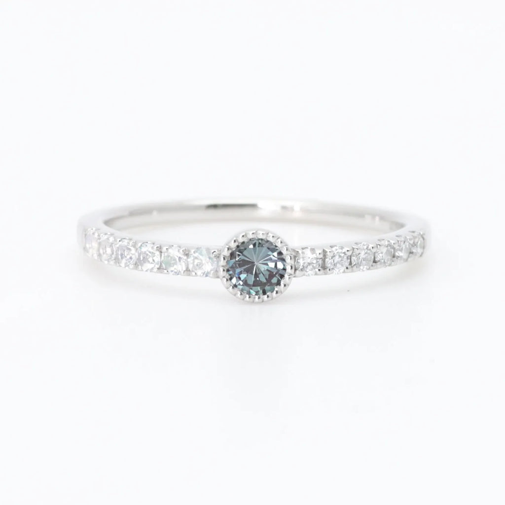 クレサンベールのカラーストーンをメインに、サイドに配したウォーターオパールとダイヤモンドが、指先に上品で華やかな煌めきを添えます。