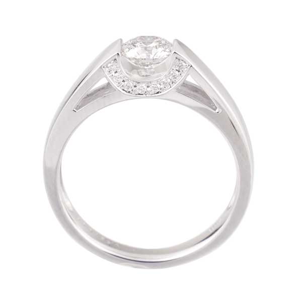 一粒0.5カラットUPの高品質ダイヤモンドを使用するとともに、サイドの部分にも工夫を凝らし、内側に光の通る空間を作ることによって光を取り込み、ダイヤモンド本来の輝きを引き出すデザインです。