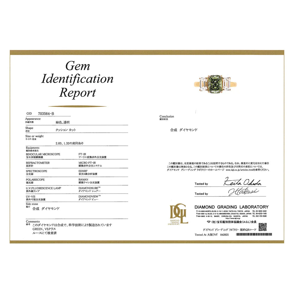【 ラボグロウン グリーンダイヤモンドリング 】