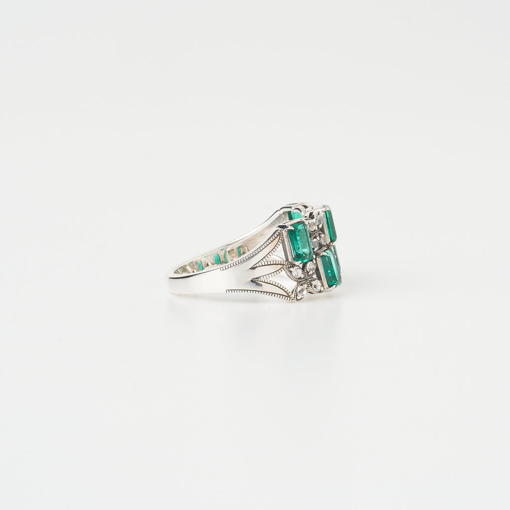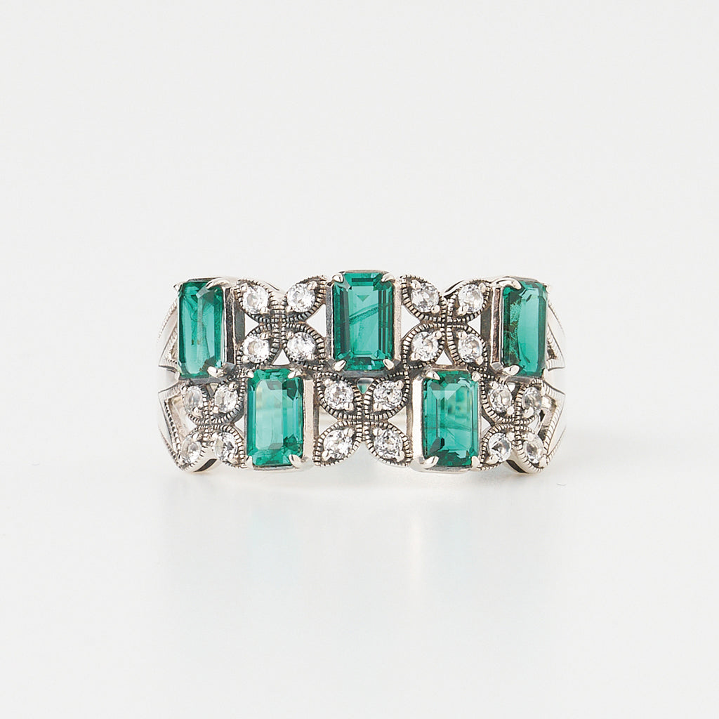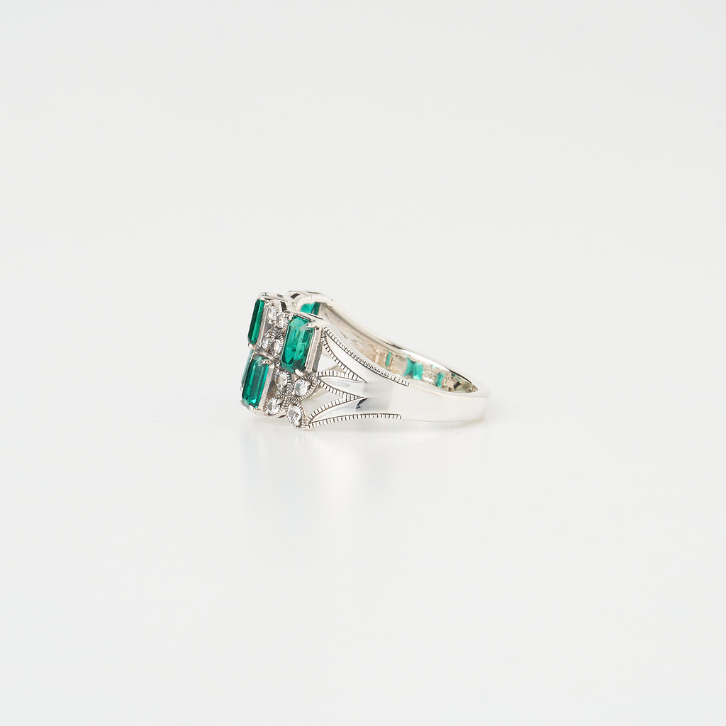 【 《English Garden/自然と建築物の調和》シルバー製 ラボグロウンエメラルド ホワイトトパーズリング 】