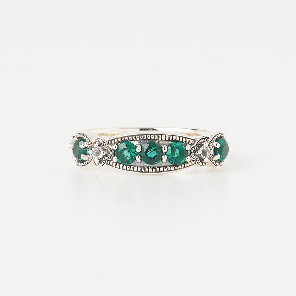 エメラルドとホワイトトパーズで自然とクレマチスをモチーフに仕立てリングです。