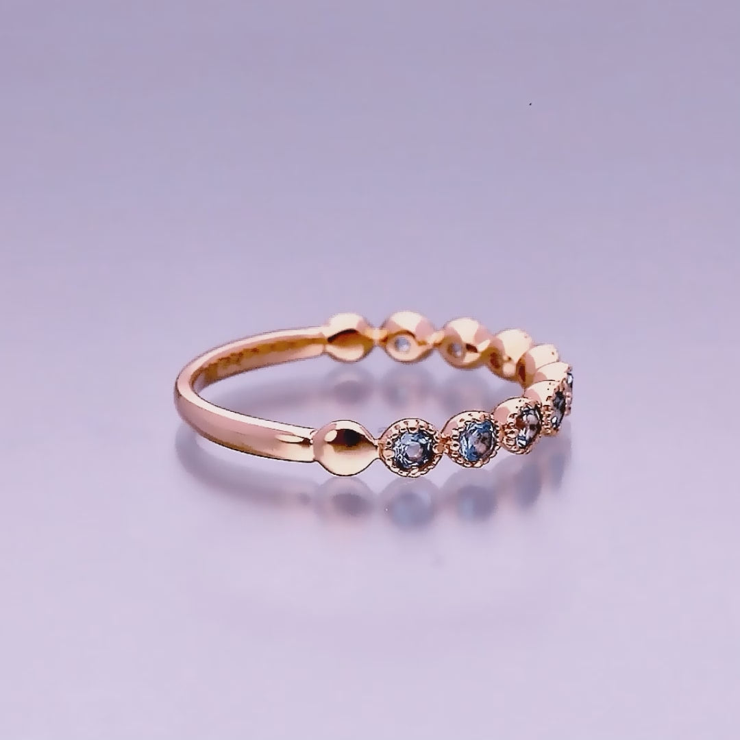 9石の天然ブルートパーズをミル打ちで仕上げたクラシカルテイストのリング。