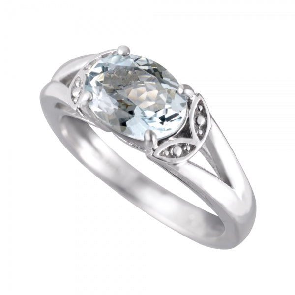 横向きにセッティングしたオーバルカットが美しいアクアマリンリング。