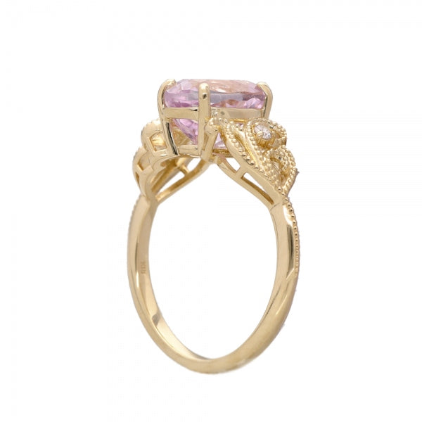 別名、カリフォルニア・アイリスとも呼ばれるクンツァイト。 ジュージ・フレデリック・クンツ博士により、1902年に発見されました。 クンツァイトの特徴はその美しいライラックピンク。 柔らかく、優しい色合いと、高い透明度が人気の理由です。 また、2021年に日本で63年ぶりに改訂された誕生石。 9月の誕生石として新たにクンツァイトも加わりました。 そんなクンツァイトを今回、相性の良いK18イエローゴールドと合わせ、 カラーから連想される「柔らかさ」や「やさしさ」をテーマに、ふんわりとしたエアリーデザインに。 また、ミルグレインを採用したことでアンティーク調も兼ね備えた上品なリングに仕上がっております。
