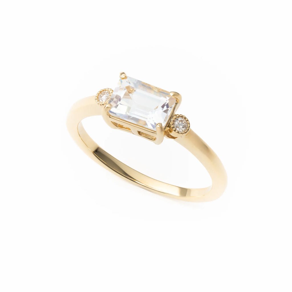 7×5mmのエメラルドカットが施されたアンデシンラブラドライトが、洗練された輝きを放つリング。