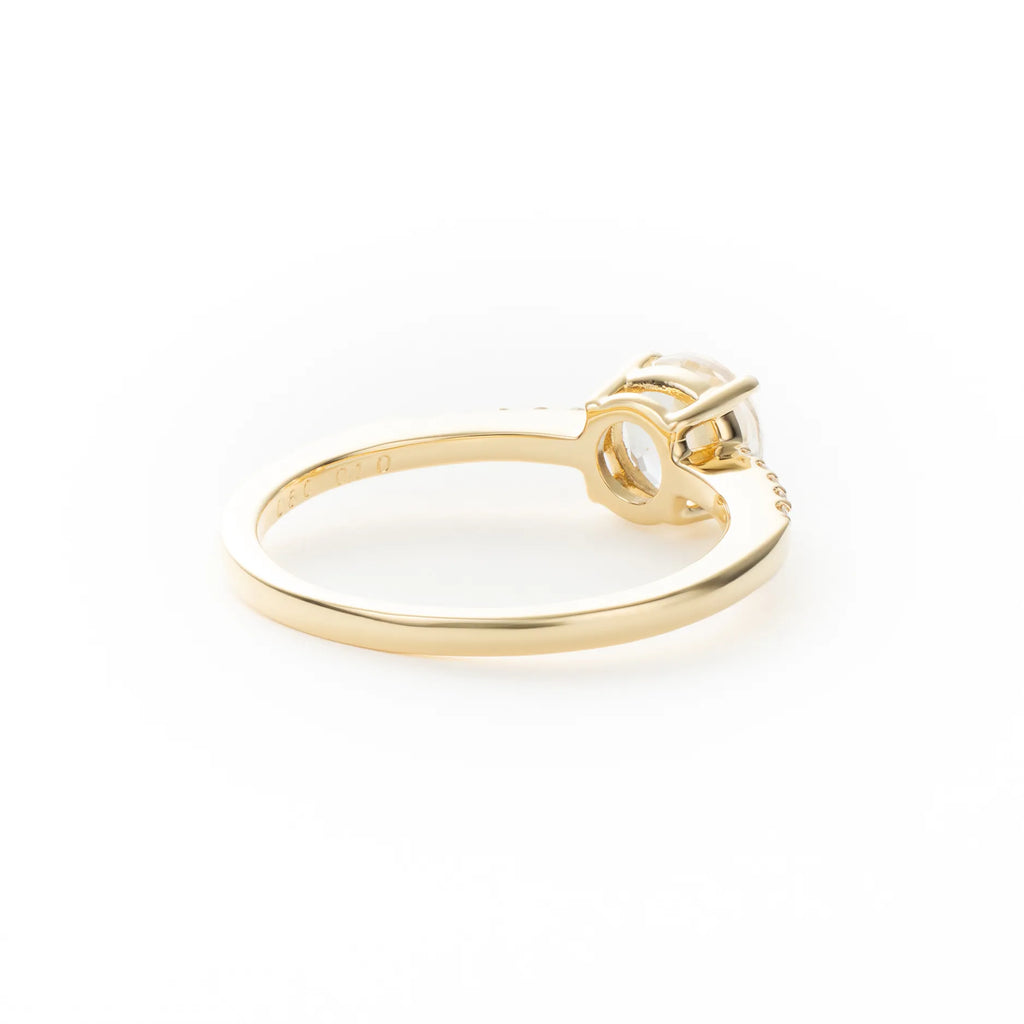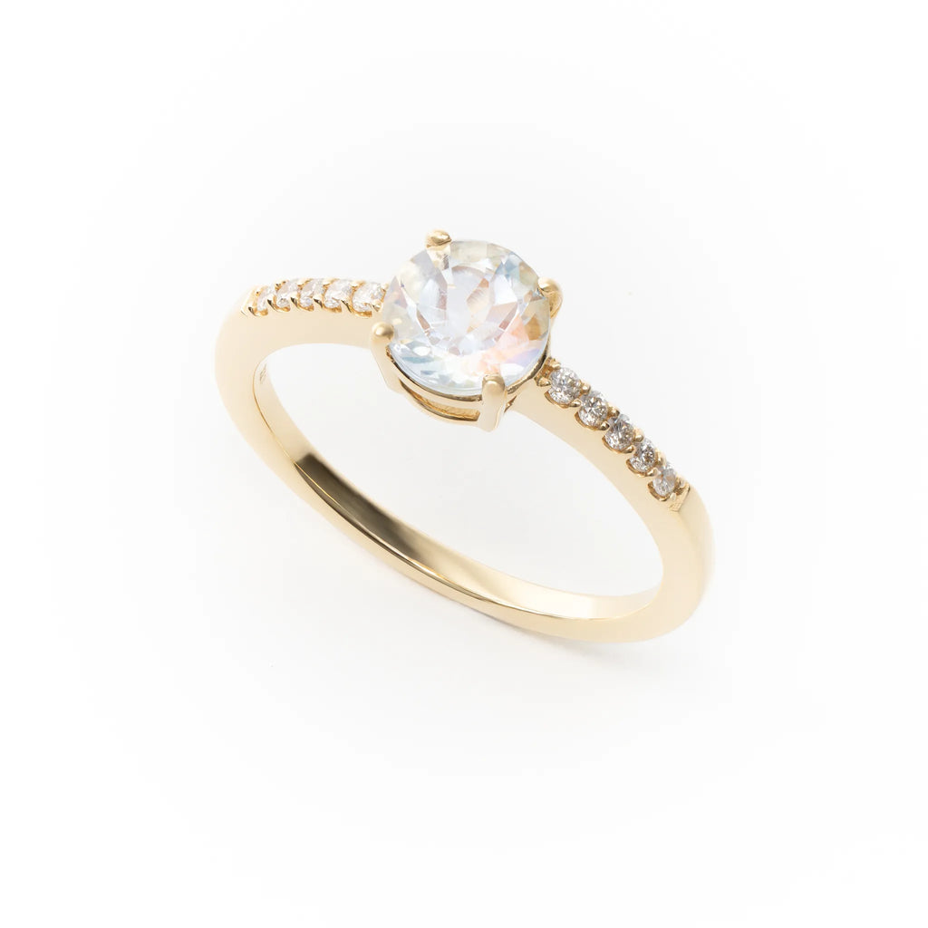 ダイヤモンドの繊細な輝きが、ラブラドレッセンスの幻想的な光を引き立てます。