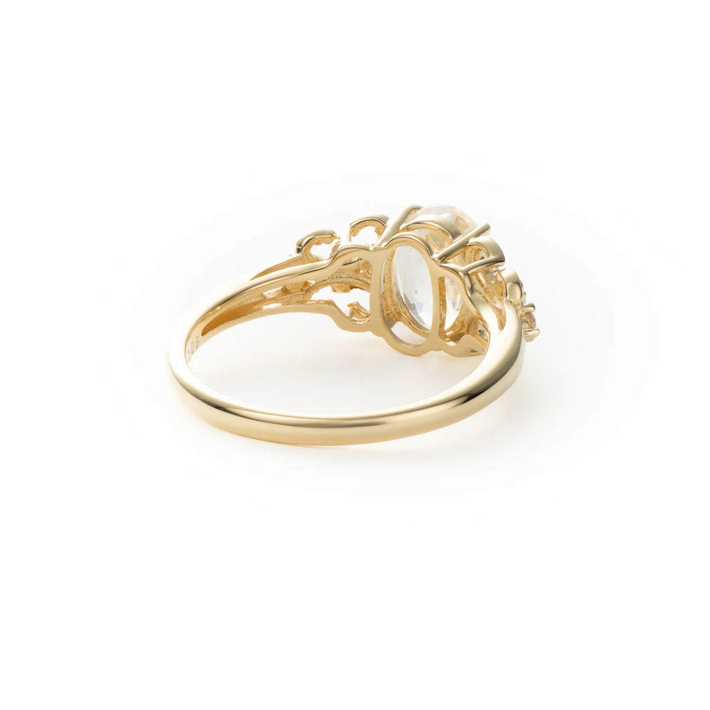 石に向かって伸びるアームは、お花や蝶を思わせる繊細なデザインが施され、優雅でフェミニンな雰囲気を演出。