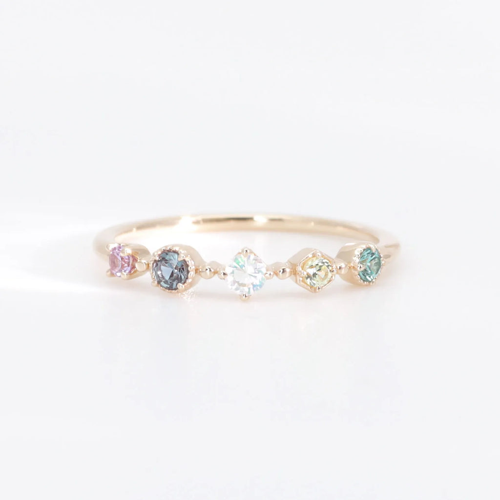 5石のカラーストーンは、まるで宝石箱をそっと開けた瞬間のように華やかに輝き、